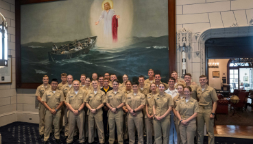 Una pintura de Jesucristo ha sido restaurada y devuelta a un lugar destacado en la Academia de la Marina Mercante de los EEUU en Kings Point, Nueva York, lo que provocó la celebración de la administración Trump y la indignación de un grupo de defensa secular.